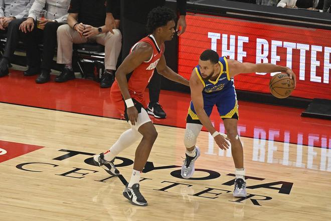 上赛季季后赛,乌度卡用阿门对位库里,但是阿门作为上赛季防守一阵,防守库里的效果并没有多好,让库里多场比赛暴走。