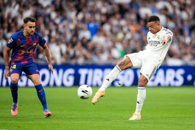 姆巴佩在皇马的起步,并不像某些“无脑吹”媒体描述得那样丝滑。他在欧洲超级杯对亚特兰大早早取得处子球,但联赛直到第4轮才开张,前5个西甲进球里有3个点球。随后两个月,他受到伤病影响陷入低潮。尤其皇马0比4惨败巴萨的比赛,姆巴佩反复掉进巴萨的越位陷阱,首次亮相国家德比在一片嘘声中退场。外界都在分析法国人究竟怎么了,似乎从技术到心理都出了问题,体重也在增加,不像以前那样轻盈了。不过当金球奖评选风波让皇马上下陷入舆论漩涡时,专心恢复状态的姆巴佩逐渐复苏了。等到12月,他在西甲、欧冠和FIFA洲际杯决赛连续进球,帮助皇马取得一波连胜。