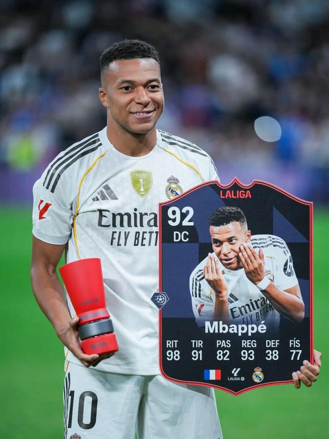 西甲第10轮对阵巴伦西亚之前,姆巴佩将近期的收获展示给伯纳乌的观众,除了金靴,还有10月最佳球员的红色奖杯。9月的西甲最佳球员也是他。这是自梅西获得2018年4月和5月最佳球员后,再次有球员蝉联这项表彰。这奖项没有巨星光环的加成,得拿出实打实的表现和数据征服评委。姆巴佩在这两个月间的7场比赛打进8球,帮助球队拿下国家德比,确立领先优势。对巴伦西亚,法国人再入2球,毫无争议地拿下全场最佳。这样他的联赛进球数就来到13粒,比第2名的“小蜘蛛”胡利安·阿尔瓦雷斯多近一倍。如今各项赛事总计贡献则是16场18球2助攻。