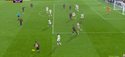 第81分钟,扳平比分,于纳尔替补上场首次触球即破门,伯恩茅斯2-2