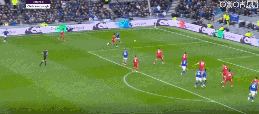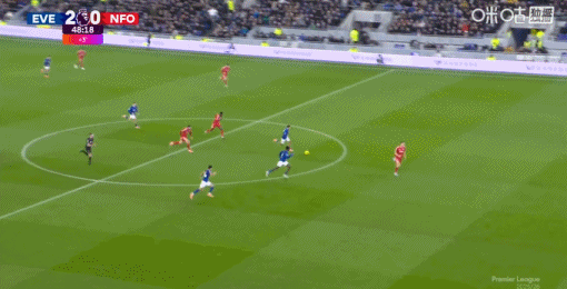第45+3分钟,埃弗顿前场三打一,恩迪亚耶助攻巴里破门,埃弗顿2-0森林
